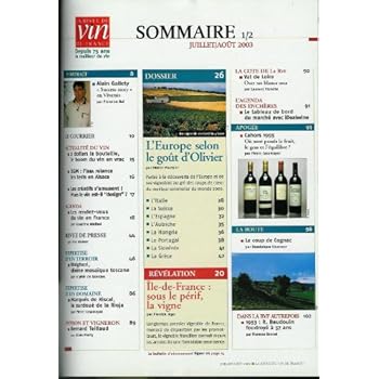 116p. ; couverture couleur, photos n&b et couleur à l'intérieur ; in-4 (29x22cm), dos carré. ARTICLES sur : Méditerranée - Vins d'Europe - Alain Gallety - Bolghery - Marqués de Riscal - Bernard Teillaud - Vignoble francilien - Val de Loire - Cahors 1995 - Marcel Guigal - Pinots noirs - Bourgogne 2002 -... SOMMAIRE en photo (cliquer sur l'image pour zoomer et pouvoir lire correctement les titres).